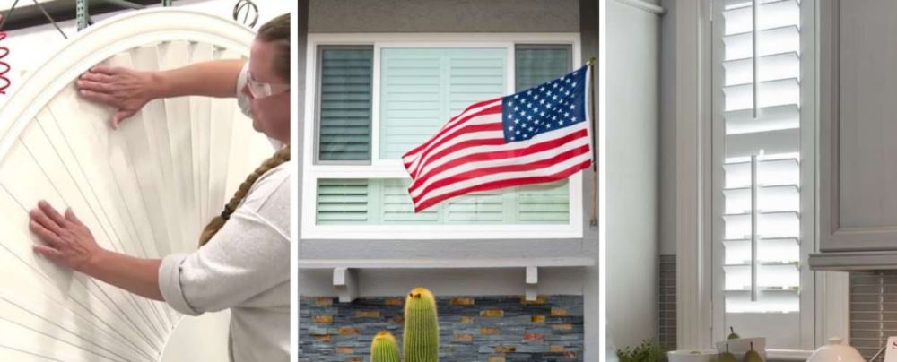 Polywood shutters are 100% made in the USA: from the raw materials to the extrusion to the painting and assembly, no part or process originates or happens outside of the USA. That’s important for Jarman and the Sunburst team and is rare in the shutter market.